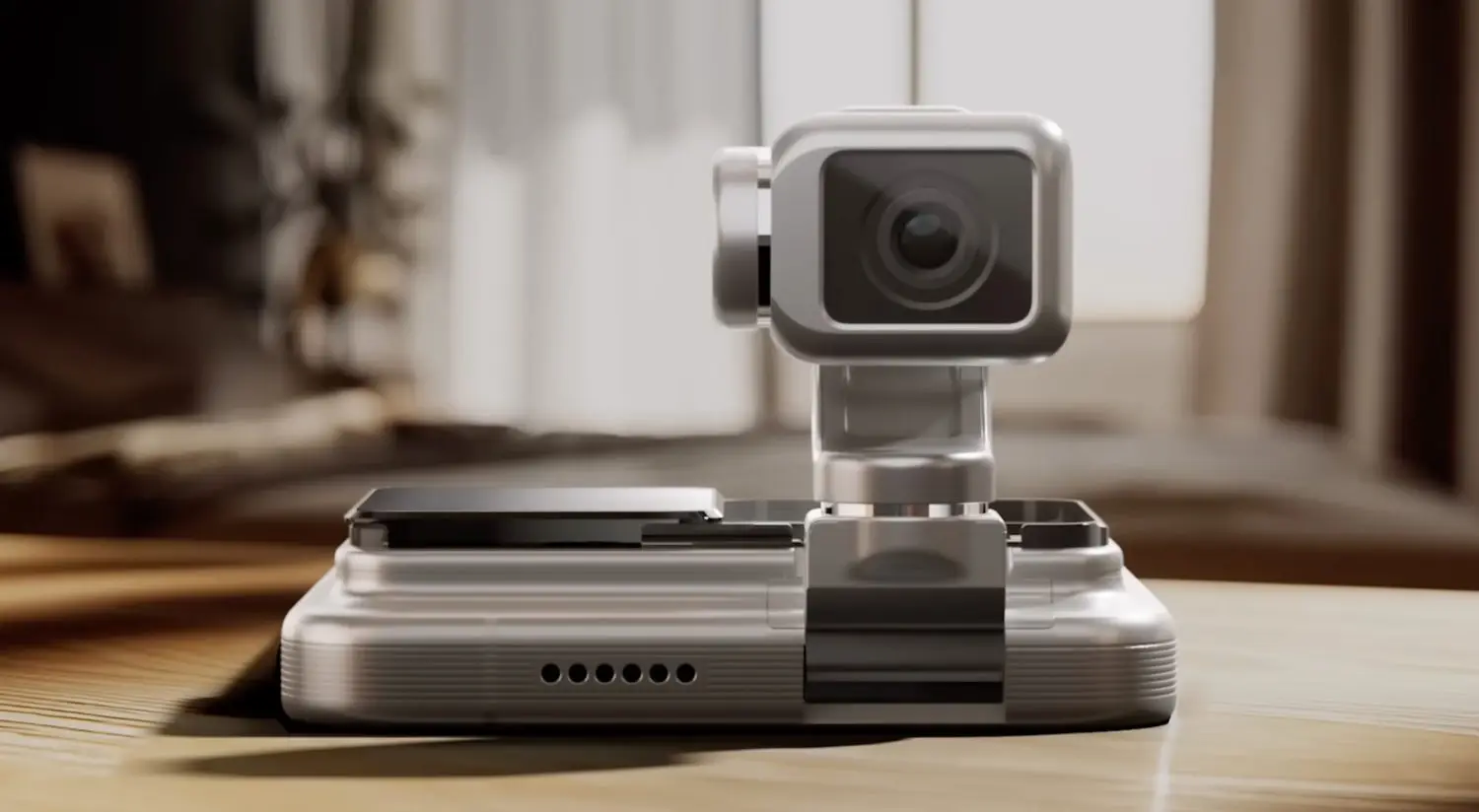 Par exemple, vous pouvez placer l’appareil face cachée et invoquer le Robot Phone pour activer le module robotique : le cardan s’activera et la caméra commencera à enregistrer la vidéo.